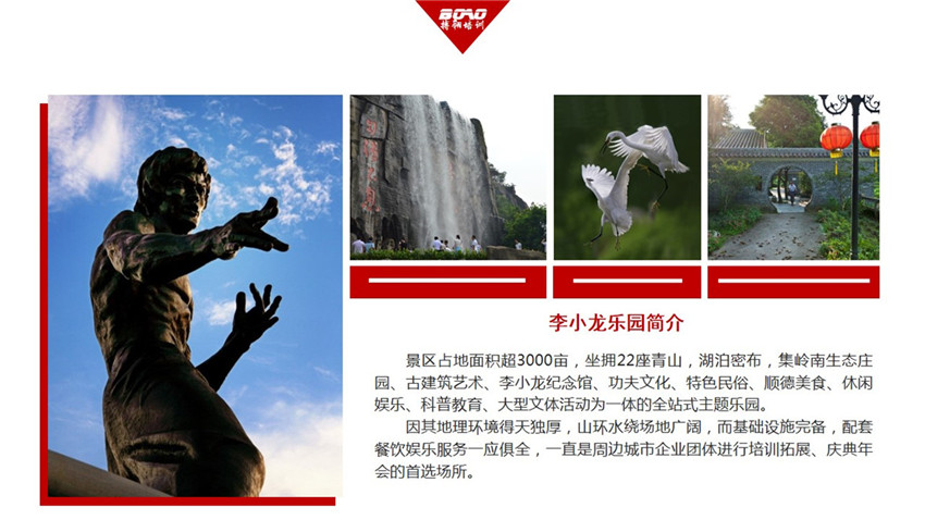 佛山順德李小龍樂園景區(qū)占地面積超3000畝,坐擁22座青山,湖泊密布,集嶺南生態(tài)莊園、古建筑藝術(shù)、李小龍紀(jì)念館、功夫文化、特色民俗、順德美食、休閑娛樂、科普教育、大型文體活動(dòng)為一體的全站式主題樂園。