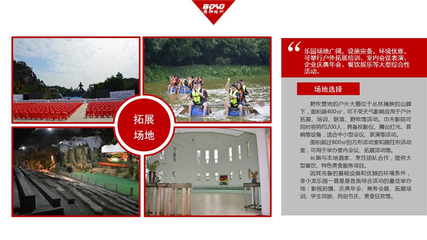 因其地理環(huán)境得天獨(dú)厚,山環(huán)水繞場(chǎng)地廣闊,而基礎(chǔ)設(shè)施完備,配套餐飲娛樂服務(wù)一應(yīng)俱全,一直是周邊城市企業(yè)團(tuán)體進(jìn)行培訓(xùn)拓展、慶典年會(huì)的首選場(chǎng)所。