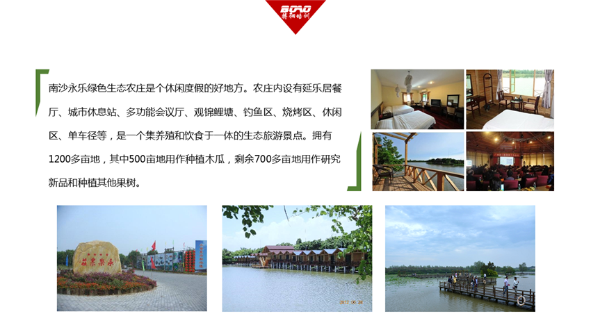 農(nóng)家樂(lè)不再是簡(jiǎn)陋的茅屋小菜,而是像酒店一樣有了“星級(jí)”標(biāo)識(shí)。農(nóng)莊位于廣州市南沙區(qū)萬(wàn)頃沙鎮(zhèn)12-13涌生態(tài)大道,南沙的永樂(lè)農(nóng)莊正式掛牌“廣州市首個(gè)四星級(jí)生態(tài)農(nóng)家樂(lè)旅游農(nóng)莊”……“永樂(lè)農(nóng)莊”占地1200多畝,種植以水果為主, 養(yǎng)殖以魚蝦、三鳥為主。2005年8月起,農(nóng)莊在這1200多畝土地上種下了200畝番木瓜、250畝番石榴、250畝無(wú)核黃皮、四季芒、枇杷、龍眼等;500畝魚塘,產(chǎn)品有南美白對(duì)蝦、黃立鯧、烏頭鯔、羅非魚、草魚等,都是從農(nóng)科所引入的優(yōu)良品種。