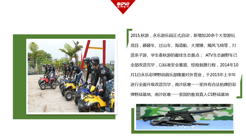 廣州南沙永樂(lè)生態(tài)園野戰(zhàn)拓展?fàn)I位于廣州市最南端的萬(wàn)頃沙鎮(zhèn)12涌半生態(tài)大道旁,廣東省四星級(jí)農(nóng)莊,占地1200畝,廣州的最南端,地處穗、港、澳“金三角”的中心,北距廣州市區(qū)52公里,東南至深圳75公里,西南至珠海69公里,沿水路東南距香港20海里,西南距澳門38海里,水陸交通極為便利,地理位置十分優(yōu)越。
